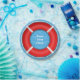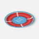 Red Life Konservierer Design auf blauem Wellenhintergrund, um für Spaß auf dem Party zu gestalten.