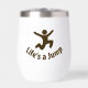 A bold, minimalist design featuring a stick‑figure person mid‑jump with arms raised, positioned above the playful curved slogan “Life’s a Jump” in thick rounded lettering, creating an energetic and motivational graphic perfect for casual or active lifestyle with a beverage.