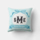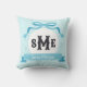Light Aqua Blue Reverse griechischer Key Bow Monog Kissen