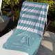 Feiern Sie Ihr Bachelorette-Wochenende, Ihren Urlaub oder Ihr Party mit diesen einzigartigen Strandtücher. Personalisierte Gestaltung mit türkisfarbenem Aqua und weißen Streifen mit dem Namen der Braut, Veranstaltungstyp, Jahr und Ziel, flankierend ein weißes Seil und Ankerillustrierung.