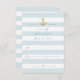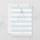 Passen Sie diese stilvolle, moderne Elegant Chic Nautical Wedding Response RSVP Card an. Light Aqua Blau und Weiß gestreift, Set als Vorlage für eine einfache Anpassung. Die Farbe hellblau der Streifen ist anpassbar und kann auf jede andere Farbe geändert werden. Sie können sie ändern, indem Sie die Hintergrundfarbe ändern. Bitte beachten Sie, dass das Gold auf diesem Design, auf Goldanker, keine echte Goldfolie ist, sondern ein Farbdruck. Die Textfarbe ist ebenfalls anpassbar, die Goldelemente können verschoben oder gelöscht werden.