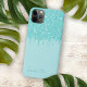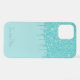 Zeitgenössische helle Aqua türkisfarbene Imitate Glitzer Handy Gehäuse. Mit Raum zum Anpassen mit einem Namen, Monogramm oder Initialen Ihrer Wahl. Schönes, modernes und cooles Cover für den Trend-geschickten und kunstliebenden angesagten Trendsetter, künstlerischer Motif-Liebhaber, der will, ihr Handy vor Staub und Schmutz, Abnutzung und Tränen zu schützen. Dieses Design ist in Apple iPhone 6, 7, und 8 Plus, 10 oder X, XR, XS, 11, 12, 13 Mini, 14 Plus und Pro Max Handy Hüllen. Zeigen Sie Ihren Stil, sehen Sie modern aus und fühlen Sie sich stilvoll mit einem einzigartigen Design auf einem mobilen Zubehör Ihrer Wahl.