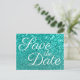 Erstellen Sie Ihre eigenen funkelnd Licht aquamarinen grün buh Glitzer Foto Hochzeit speichern Sie das Datum. Passen Sie den Stil des Schriftartes an und grau auf der Rückseite. Passen Sie die weiße Kalligraphie auf der Vorderseite an.