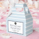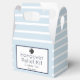 Perfectly classic pale light blue and white seersucker striped with black accents hangover relief kit favor box that is customizable.