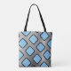 Mit seinem eleganten, zeitgenössischen Design trägt diese stilvolle Tasche Ihren Alltag. Für ein geometrisches, modernes Erscheinungsbild werden hellblaue Diamantformen in fett schwarz definiert und vor einem kalten, silbergrauen Hintergrund platziert. Sein schlichter Stil und seine ausgeklügelten schwarzen Gurtbänder eignen sich sowohl für formelle als auch für informelle Veranstaltungen. Diese Tasche verbindet Funktionalität und trendige Anziehungskraft und eignet sich somit hervorragend, um Dinge zu erledigen oder ein wenig Eleganz zu Ihrem Outfit hinzuzufügen.