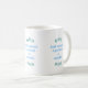 Hellblaue Aquamarine Edelsteine auf weißer Tasse. Text kann personalisiert sein.