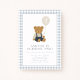 Feiern Sie den großen Tag Ihres kleinen Jungen mit dieser zauberhaften hellblauen Gingham-Teddy-Geburtstagseinladung. Mit einem süßen braunen Teddy, der einen Ballon hält und in Overalls gekleidet ist, eignet sich dieses bezaubernde Design perfekt für eine 1., 2. oder Kleinkind-Geburtstagsfeier. Das hellblaue Gingham-Muster fügt eine sanfte und klassische Touch hinzu, die sich ideal für Babyduschen oder Geburtstagspartys mit Bärenmotiv eignet. Personalisieren Sie Ihre Daten mit dem Namen und dem Party Ihres Kindes. Dieser gemütliche und zeitlose Teddybär lädt die Anzüge zu Gingham-Kinderzimmer oder einem Party mit weichen Tieren ein. Ein perfekter Sake und eine Einladung in einem!