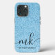 Light Blue Glitzer Bokeh Custom Monogram und Name Case-Mate iPhone Hülle