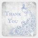 Siegel danke Ihnen Karten mit dieser eleganten Light Blue Peacock Leaf Weinhochzeit danke Ihnen Aufkleber. Das Design der Sticker zeichnet sich durch einen hellgrauen Grunge-Hintergrund mit einem lebhaften hellblauen Pfau mit weißem botanischen Dekor aus. Zusätzliche Hochzeitsware, Hochzeitsartikel und Gastgeschenke sind ebenfalls mit diesem Design erhältlich.