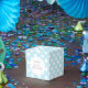 Hellblaue und weiße Polka Punkte Party Box. Ideal für Babydusche oder Kindergeburtstag.