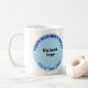 Tasse, dass Sie anpassen können, um Ihren Firmennamen, Logo, Stadt oder Stadt und Staat. Sie können es in Ihre Werbeprodukte aufnehmen, Ihren Kunden oder Kunden Geschenke oder Werbegeschenke schenken, um Ihren Markennamen zu fördern oder Ihr Unternehmen zu bewerben. Anpassbare Tasse, mit der Sie Markenbewusstsein schaffen können. Tasse für Ihr Lebensmittelgeschäft wie Coffee Shop, Diner oder Restaurant. Designfarben sind dunkelblaue Texte auf hellblauem, runden Hintergrund. Bitte Karo nach dem Hochladen von Logos und Schriftzeichen auf der Vorder- und Rückseite. Wenn Ihnen das Aussehen gefällt, können Sie jetzt Ihre Bestellung aufgeben. Wenn Sie die Größe des Logos und der Texte ändern und verschieben müssen, um sie in die Vorlage dieser Tasse oder in andere Stile, die Sie wählen möchten, einzufügen, ändern Sie bitte das Design-Tool. Sie können auch die Farbe des runden Formularhintergrunds, der Schriftart und des Schriftartes im Designwerkzeug ändern.