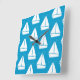 Light Blue Sailboat Pattern Quadratische Wanduhr