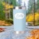 Verschenken Sie Ihre Hochzeitsjury mit diesem trendigen und personalisierten, rostfreien Edelstahl, Thermalwäscher mit ihrem Namen in stilisierter Schrift in einem weißen ovalen Design. Hintergrundfarbe und Skript ist eine hellblaue Farbe. Personalisieren Sie Ihren Wärmeleiter, indem Sie den Namen der Brautjungfrau mit dem gewünschten Namen bearbeiten und ersetzen. Erhältlich in vielen beliebten Hochzeitsfarben.