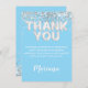 Hellblau und silber Party Dankeschön-Karte, das ist das Dankeschön für das Pfirsich- und SilberGeburtstagsparty-Set, aber kann als Dankeschön für jeden Anlass verwendet werden.
