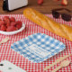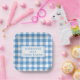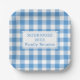Bereiten Sie sich auf eine Wiedersehen mit Tellern aus Papier vor, die einen hellblauen und weißen Büffel-Karo mit bis zu 3 Textzeilen in einem weißen Rechteck in der Mitte kariert haben. Ideal für einen Grill, Picknick oder eine neue Tradition. Personalisieren Sie es mit Ihrem Namen und Text in der Sidebar. Um das Design Light Blue und White Gingham Muster auf anderen Gegenständen zu sehen, klicken Sie auf den Link "Rocklawn Arts". Digitales Bild. Copyright ©Claire E. Skinner. Alle Rechte vorbehalten.