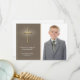 Eine stilvolle Christliche Fotokarte in hellbraun mit Goldkruzifix und glühender Wirkung. Als Communion Dankeschön Karte, kann aber für jedes religiöse Ereignis angepasst werden, einschließlich Taufen, Taufen, erste heilige Kommunionen oder Bestätigungen.