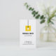 Eine Visitenkarte mit einem hängenden Glühbirnen-Symbol über einem gelben Quadrat. Farbpalette aus schwarz, weiß und gelb. Ideal für Elektriker und für Installateure von elektrischen Leitungen und Beleuchtungseinrichtungen. Personalisieren Sie Ihre Geschäftsinformationen in den Vorlagen, die Sie einfach lesen können.