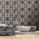 Light Denim Dark Denim Tan Geometric Pattern Tapete