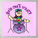 Drummer, Perkussionisten, Bandmitglieder, Musiker und zukünftige Rockstars werden dieses schlagende Design Liebe geben. Wer sagt, dass Mädchen nicht Schlagzeug spielen können? Mädchen können nicht was?