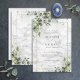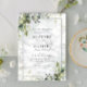 Erleben Sie die typische botanische Hochzeit mit diesem strahlend blauen Eukalyptus-Ambiente, einem üppigen, grünen Design mit Imitaten Carrera-Marmorhintergrund, Aquarellstrümpfen, Imitaten Goldstaub und trendiger Schriftzeichen. Die Einladung ist Teil einer Sammlung. Copyright Elegant Invites, alle Rechte vorbehalten.