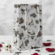 Dieser in schwarzer Tinte gezeichnet Geschenksack weist ein wunderschönes Skulpturenmuster, Rose und Spinnennetze in Creme- und Blütentönen auf, die alle auf einem eleganten, hellgrauen Hintergrund zu sehen sind.