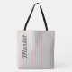 Designer pinstripe hellgraue Markttasche. Der Text kann personalisiert sein oder entfernt werden. Der hellgraue Hintergrund kann in Ihre Lieblingsfarbe geändert werden, um ihn zu einer eigenen zu machen. Schöne Stofftasche.