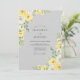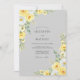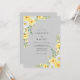 This design features a sophisticated palette of soft charcoal and sunny citrus tones, creating a refreshing aesthetic. Delicate watercolor yellow roses and white ranunculus bloom from the corners, complemented by sage green eucalyptus leaves. The backdrop is a smooth, understated gray that allows the vibrant floral arrangements to stand out with grace.