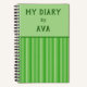 Geben Sie Ihrem Tagebuch die berufliche Behandlung mit einem echten Titel und mit einem Stern! Design zeigt den Titel und Autor-Kredit auf einem grünen Hintergrund über einem Abschnitt von vertikalen Streifen in der Koordinierung von Farbtönen. Die Rückseite hat die gleichen Streifen in einer bunten Palette.