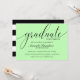 Herzlichen Glückwunsch für Ihren Abschluss! Freuen Sie sich auf die eleganten und modernen Einladungen von Light Green mit "graduate" in handgeschriebener Kalligraphie. Ein elegantes Schwarz-Weiß-Muster komplettiert die Karte auf der Rückseite Für Hilfe oder individuelle Anfrage kontaktieren Sie uns bitte durch den Shop oder schreiben Sie eine E-Mail an citronelladesign@gmail.com Schwarzer Hintergrund kann leicht geändert werden mit dem Button "Anpassen Sie es"