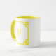Dekorativer, weißer und blassgelber griechischer Schlüsselrahmen mit einem modernen Serifenmonogramm. Passen Sie dieses zeitgenössische Design an, indem Sie Ihre Lieblingsfarbe auswählen. Ändern Sie bei Bedarf den Stil, die Größe oder die Farbe des Schriftartes. Bevorzugen Sie nur eine Seite Ihrer Tasse mit Monogramm? Sie können auch eines der ersten Designs auf beiden Seiten der Tasse löschen.