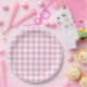 Ändern Sie die hellrosa Hintergrundfarbe hinter dem nahtlosen Gingham Muster. Fügen Sie Text zur Personalisierung hinzu. Erstellen Sie Ihre eigenen Teller. Das traditionelle Gingham-Muster verleiht jedem Event eine Touch von Charme und Nostalgie. Diese Teller eignen sich hervorragend für eine Babydusche, ein Wiedersehen-Picknick, Grillabende oder jede Ansammlung im Freien, wo eine lässige und fröhliche Atmosphäre gewünscht wird. Sie können auch in eine Vintage oder landesweit inspirierte Hochzeit eingebunden werden.