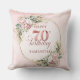 Celebrate 70 years in style with this shimmering rose gold pillow. Featuring dusty pink, blush pink, and light pink watercolor flowers, lush greenery, eucalyptus accents, and a gold frame, this boho, floral, and bohemian design makes a perfect gift for a 70th birthday pillow.