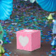 Feminine light pink and white design in the squiggly squares fractal. Add an initial for personalization for your party or event. Heart shaped favor box works for nearly all occasions.