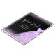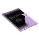 A beautiful light purple themed elegant watercolor dress gown on a black background with faux glitter at the top and bottom of the guest book.
