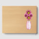 Hübsche, rosa Blume, ein Glaskeramik auf hellen Holzfußböden schmücken dieses Gästebuch. Die Hochzeitsgärten sind sowohl für das Paar als auch für die Feste ein Vergnügen. Laden Sie die Teilnehmer ein, um Ihnen gute Wünsche an Ihrem Empfang verlassen, und Sie werden sicher sein, auf die nächsten Jahre zurückblicken zu können. Außerdem werden Ihre Gäste auf Ihrer Veranstaltung ihre Marke verlassen, ganz zu schweigen davon, dass sie schreiben können, was sie am großen Tag nicht persönlich zum Ausdruck bringen konnten. Personalisieren Sie das Buch, indem Sie den Text in den angegebenen Feldern ändern. Sie können den Stil, die Größe und die Farbe des Schriftartes ändern.