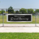 Maßgeschneidertes Großbildbanner für Ihr neues Kleinunternehmen. Der Hintergrund ist mit glänzenden, hellsilbergrauen Imitaten und einer farbigen Foliendiagramme mit einem schwarzen Rechteck versehen. Sie können den Stil des Schriftartes und die Graufarbe anpassen.