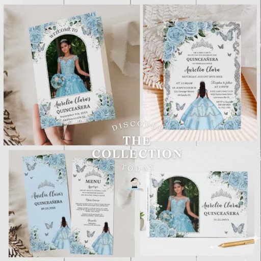 Sky Blue Floral Silver Quinceañera Sweet 16Designt von The Happy Cat Studio