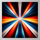 Artwork of a light speed warped stripes design. This design evokes the classic "Synthwave" and retro-futurist aesthetic with its laser-like precision and neon coloring. The glowing lines look like light cycles or lasers zooming toward a distant horizon. The high-contrast color palette pits fiery reds, oranges, and yellows against cool, electric cyans and deep blues. Set against a pitch-black background, the neon light trails create a sense of infinite depth and speed. Perfect for anyone who loves the vintage sci-fi look.