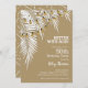 Geburtstagsfeier Einladungen für jedes Alter mit Lichterketten an weißen Palmenfronten auf einem goldenen Hintergrund und Ihre Details in schicken Schriften. (Sie können zu jedem Farbhintergrund zu JEDER FARBE wechseln! PASSENDE Artikel in unserem Geschäft.