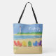 Bleibe mit dieser personalisierten Tasche, die mit einem Leuchtturm und Liegestühlen für eine Ansammlung ausgestattet ist, immer in einem Staat am Strand. Personalisieren Sie mit jedem Namen. Toll wie eine Strandtasche!
