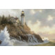 Illuminate your next creation with Lighthouse Cottage on Cliffs Decoupage by Decoupage_Boutique. This dramatic seaside design features a steadfast lighthouse and its adjoining cottage anchored atop jagged rocks as waves explode below. Warm light glows from the windows while dawn breaks over the sea — a symbol of guidance, solitude, and strength.