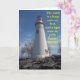 Das ist eine inspirierende Grußkarte mit einem Bild eines Leuchtturms und Bibelversen.