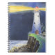 Dieses Tagebuch verfügt über einen stehenden, hohen Leuchtturm an der Meeresküste, der Schiffe schützt, und einen kleinen Hund, der in die Nacht hinaufschaut. Die Illustration stammt aus einer Gedichtanthologie, "Friends and Anemones: Ocean Poems for Children", veröffentlicht von The Writers’ Loft, Sherborn, MA.