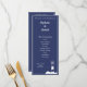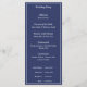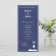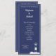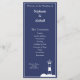 Elegantes und einfaches marineblaues Hochzeitsfeierprogramm mit einer Illustration eines Leuchtturms für eine Hochzeit zum Thema Meer und Wassersport!
