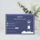 Eine elegante und einfache marineblaue RSVP-Karte mit einer Illustration eines Leuchtturms für eine Meeres- und nautische Hochzeit! Ändern Sie einfach die Informationen und schicken Sie sie an Ihre Gäste!