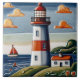 "Rot-Weiß-Leuchtturm", "Wassermeer-Thema", "Meeressegler-Gebäude", "gestreifter Streifen-Turm", "Blaue Wasserwellen-Himmel", "Szene an der Küste", "Bootsboote Segelbootkunst", "buntes traditionelles Gemälde", "Strandhaus-Dekoration", "niedlicher blauer Cartoon"