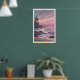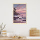 Lighthouse Sunset Print Muted Blue and Pink Poster