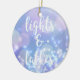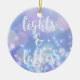 NewParkLane - Glamouröses Hanukkah-Ornament, mit blauen funkelnden, glitzernden Lichtern und lustigen Zitaten 'Lichter & Latkes' in einer Schriftzeichen. Dieses Design ist auch auf Karten und Postkarten erhältlich.