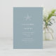 Dieses Hochzeitsdesign ist eine perfekte Mischung aus Eleganz und Strandatmosphäre. Das Design zeichnet sich vor allem durch ein kleines, weißes Sternenmotiv aus, das sich anmutig in der Mitte des staubblauen Hintergrunds befindet. Das Seesternmotiv ist kompakt konzipiert und fügt der Einladung eine Touch der Natur hinzu. Die verwendete Typografie ist klassisch weiß, was eine Touch von Raffinesse hinzufügt und sicherstellt, dass der Text leicht lesbar ist. Der Schriftart ist sauber und modern, wodurch ein zeitloses Aussehen entsteht, das nie aus der Mode kommt.