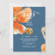 Orangefarbene Blume und blauer und orangefarbener Kürbis. L'il Kürbis auf dem Weg. Einladung der Babydusche. Neutral.